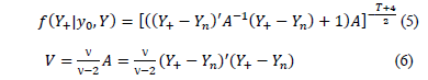 , n degrees of freedom, and variance according to eq. (6). The forecasting process uses the eq. (5), and its mean considers the designed matrix X. based on the adjustment of the regression eq. (1). The analytical formulation of this predictive distribution is also explained in the appendix.