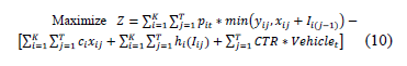We propose performing profit maximization using a formula similar to the Wagner-Within model with the addition of transportation costs CTRt. Almost equivalent results can be obtained by considering the problem as one of cost minimization.