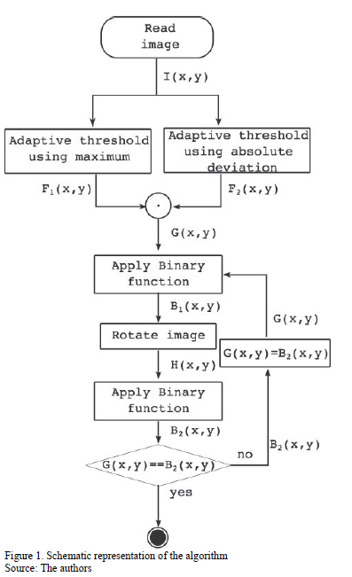 The next step in this stage is the generation of a binary image G(x,y) using Eq. 5, through the logic operation AND of the results from Eqs. 2 and 4.