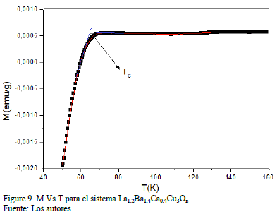 La Fig. 9 se muestra la curva de magnetización ZFC en función de la temperatura, la cual es típica de un material superconductor; se muestra la forma como se calculó la temperatura crítica en cada una de las muestras.