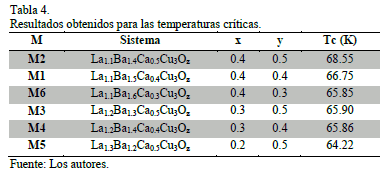 En la Tabla 4 se consigna los resultados obtenidos para los valores de la temperatura crítica todas con un campo aplicado de 200 Oe.