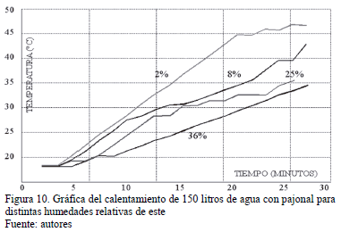En la gráfica de la Fig. 10 se observan los resultados obtenidos en la caldera/cocina utilizando pajonal con distintos contenidos de humedad