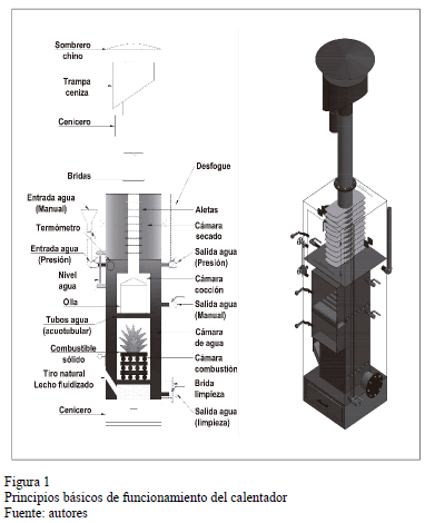Con dicho objetivo, por lo tanto, se diseña un calentador de baja temperatura y presión, que permita la combustión eficiente de biomasas con reducido poder calórico y la máxima recuperación del calor producido en la cámara de combustión y el circuito de extracción de humos.