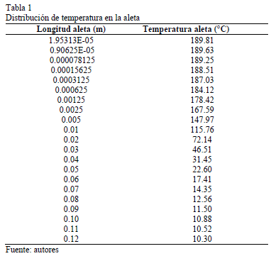 Para la determinación de la longitud efectiva de las aletas anulares de sección transversal uniforme se parte de suponer la aleta infinitamente larga para determinar la distribución de temperatura a lo largo de la misma. Los resultados obtenidos se muestran en la Tabla 1.