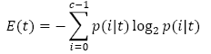 denota la fracción de registros pertenecientes a la clase i en un nodo t dado, y c es el número de clases.