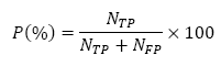 (7)Donde Nc es el número de patrones clasificados correctamente, NT es el número total de los patrones empleados en la clasificación, NTP es el número de verdaderos positivos, NFP es el número de falsos positivos, NTN es el número de verdaderos negativos y NFN es el número de falsos negativos.