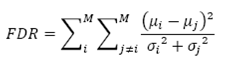The Fisher’s separability criterion applies to samples that respond to various conditions. First, samples should have statistically different mean values; this condition is verified through the Student criterion [34]. Second, the two classes must follow a normal probability distribution; this condition is verified through the construction of empirical and normal probability curves for each class, and the subsequent demonstration of the goodness of fit between the two curves using the criteria of Kolmogorov-Smirnov test and 𝝌𝟐 [35]. All the analyses were performed to the level of two-tailed significance test 2α = 5% for each class.