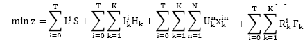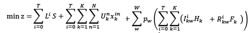 El procedimiento anterior se formula inicialmente como un modelo determinístico, el cual para dar cabida a las dos etapas de decisión se rediseña en un modelo de programación estocástica, como se presenta a continuación: