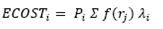 (17)Where λi is the average failure rate at load point i, Ui is the annual outage duration at load point i, Pi is the average load of load point i, ENERGYAVERAGE-i is the average monthly active energy consumption in the last year at load point i, EENSi is the expected energy not supplied index at load point i, ECOSTi is the expected interruption cost index at load point i, f(rj) is the CCDF (Composite Customer Damage Function) for element j, IEARi is the interrupted energy assessment rate index at load point i, MONEYi is the last month´s sum of invoiced values for active energy consumed by customers connected to load point i, ENERGYi is the sum of energies consumed by customers over the last month connected to load point i, CCDFi is the CCDF at load point i, and Ni is the number of customers at load point i [7,8]. For Colombian electric utilities, a load point i is the same as a primary node with an associated load. The sum of invoiced values related to the MONEYi calculation is performed through the Unitary Cost per each customer according to Colombian electricity market regulations [9].
