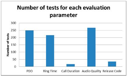 Based on the experience of VoIP carrier technicians, the grade of the destination of a carrier depends on several factors. A survey was performed in the company Estel Communications (a VoIP carrier) in order to determine which parameters are used to grade the call connectivity. Since the test results were stored in the e-mail account of the network operations center (NOC), each message had in its body the main parameters used for deciding whether the tests were successful or not. In 308 tests made by technicians, requested in the first days of March 2012 (Property of Estel Communications® used only for educational purposes), the parameters used for grading the performance of the carrier regarding call connectivity are shown in Fig. 2. These parameters are described below for the Session Initiation Protocol (SIP):