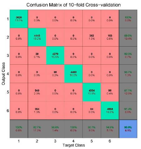 The result of the 10-fold Cross-validation confusion matrix (combining the results of 100 tests matrices) is shown in Fig. 3. It can be seen that for most classes the accuracy was higher than 90%. Although FAS detection was 82.7% (target class 2), it increases the accuracy of CheckMyRoutes (68% presented in section 4). Also it increases the accuracy for classes of calls that connected properly. From this result, it can be said that the SVM is more trustworthy for the classification of properly connected calls. However FAS detection accuracy is better compared with CheckMyRoutes.