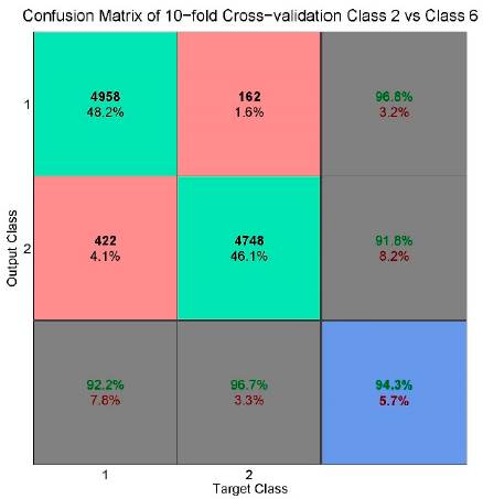 respectively. The second grid search involved the SVM for classification of Class 2 and Class 6. The values of