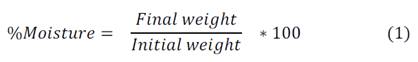 The moisture percentage (%M) was determined with the final and initial weights using a moisture balance (XM60 e=0.01 Precision, Swiss); see (Eq. 1).