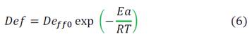 Where 𝐸𝑎 is the activation energy (KJ/mol), 𝑅 is the universal constant of the gasses (8.3143 x 10-3 kJ/mol K), T is the air temperature (K), and 𝐷𝑒𝑓𝑓 0 is the diffusivity in (m2.s-1). The linearized slope based on (Eq. 6) is associated with the activation energy.