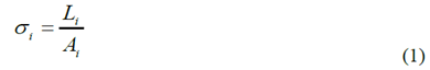 The Stress and Strain were calculated with the following Equations: