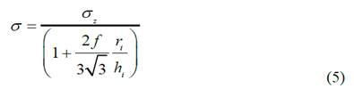 Where ri is the instantaneous values of radius, calculated from Ai (Eq. 3), σ and σz (σz is σi in Eq. 1) are the Equivalent axial stresses without and with the frictional condition (these lasts ones are took from Fig. 3); f is the Tresca Friction Coefficient and it is Equal to