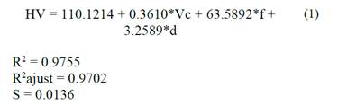 Finally, using multiple linear regression methods [15], a statistical mathematical model was derived for the prediction of the maximum surface hardness.