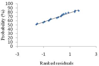 The plot in Fig. 5 reveals that the residuals follow a straight line and so the errors appear to show that the dependability of the expression is completely proven [15].