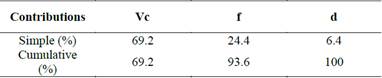 Then, a Pareto-Anova analysis was performed to determine the relative importance of each parameter and their percentage contribution.