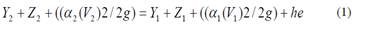 α1, α2 ; coeficientes de ponderación de las velocidades en 1 y 2
