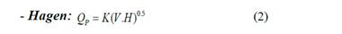 Para la estimación de los caudales punta generados en la brecha de Vega de Tera se han analizado comparativamente las ecuaciones de Hagen (Eq.2), en las versiones de Pierce M.W. y del Ministerio de Medio Ambiente, la de Costa (Eq.3,4) y la del U.S. Boureau of Land Reclamation (Eq.5).