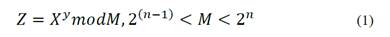 Modular exponentiation consists in finding a solution to the following eq. (1):
