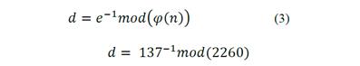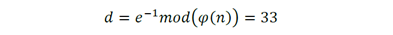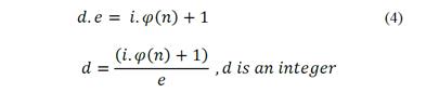 4. Finds the multiplicative inverse in modulus φ(n) of e, defined by:
