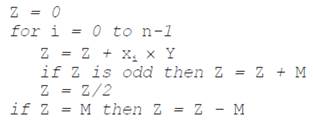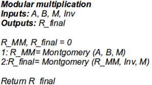 The Montgomery Method is described in the pseudo code shown in Fig. 2.
