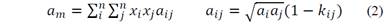 Each EOS can hold important information about mixture behavior, such as the Peng-Robinson ai and bi coefficients. When mixtures are modelled, mixing rules, which account for molecular interactions, are needed. Equations 2 and 3 show the modified van der Waals mixing rules, where am and bm are the EOS coefficients of mixture and kij is a temperature dependent binary interaction parameter (BIP) [2]. The BIP holds the dissimilar molecular contribution information needed for mixture representations.