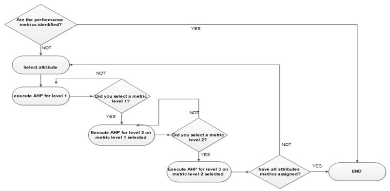 Step 4: After obtaining the valuations and weights for each of the alternatives (metrics) the one with the highest score will be chosen as the metric to measure the performance of the chain for the respective level of the specified attribute.