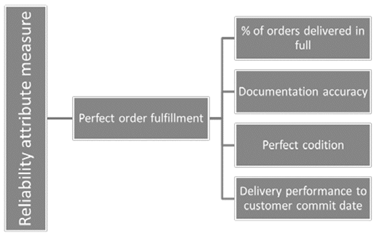 Reliability: The level 1 metric selected for this attribute comes defined by default, according to the SCOR model, and it is the perfect fulfillment of the order.