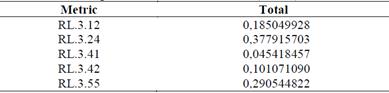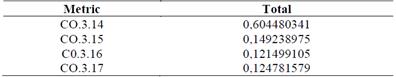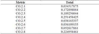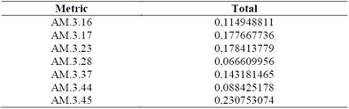 So, after having the matrices completely corrected and obtaining the weighings for each criterion (metrics and attributes), it was weighted with the criteria weights of each of the experts showed in Table 5 in order to finally reach the following results:
