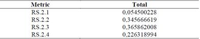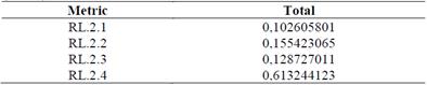 The level 2 metric selected for this attribute is RL.2.4 which corresponds to perfect conditions, obtaining a 61.3% weight of importance according to Table 9.