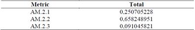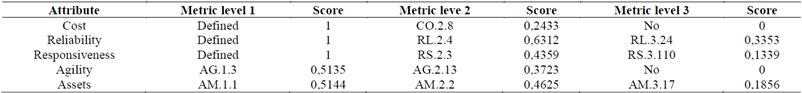 On the other hand, the level 1 metrics corresponding to the attributes of agility and assets move respectively from AG.1.3 (Forward adaptability) and AM1.1 (Cash flow cycle time) to AG.1.4 (Amount at full risk) and AM.1.3 (Return on work capital), which corresponded to the second pondering in the order of the level 1 metrics of the initial system.