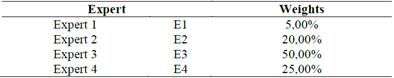 The first scenario assigns a weight equal to 25% for each of the expert opinions, which modifies the initial situation that assumes a differential weight for every one of them.
