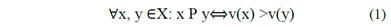 In practical terms, in order to make it possible to ordinarily measure the attractiveness of options x of a finite set X, it is necessary to associate to each x a real number v(x) which satisfies the conditions: of strict preference (eq. 1) and of indifference (eq. 2).