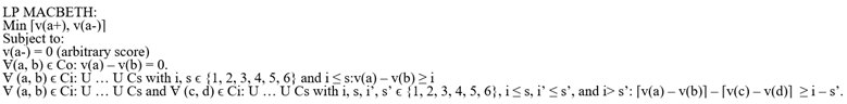 From the judgment matrix, MACBETH proposes a score for each option which composes the numerical scale of the method. Be the difference the categories which differ the attractiveness (Ck) with k =0, ..., 6, which corresponds to “null” (Co), “very weak” (C1), “weak” (C2), “moderate” (C3), “strong” (C4), “very strong” (C5) and “extreme” (C6). Furthermore, Andrade, Andrade and Mello [18] highlight that, if v(a+) and v(a-) are, respectively, the greater and lesser scores among the options, the base MACBETH scale may be found resolving the following linear programming problem: