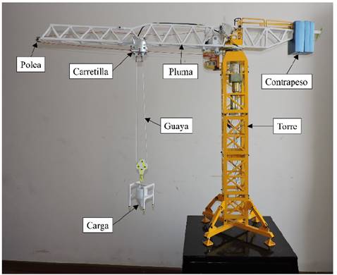 Las grúas torre de pluma horizontal son sistemas mecánicos encargados del transporte y posicionamiento de carga pesada dentro de una área de trabajo determinada. Las técnicas modernas de construcción emplean mayores requerimientos tanto de velocidad de transporte y posicionamiento de la carga como de precisión. Sin embargo dados esos requerimientos y considerando la configuración mecánica que presenta este tipo de sistema, se generan oscilaciones indeseadas en la carga aumentando el tiempo de posicionamiento de la misma [1], arriesgando la integridad del sistema [2] y el personal en el área de construcción.