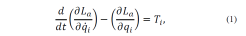 El modelo mecánico de la grúa-torre, se obtiene a partir de la siguiente ecuación de LaGrange [18].