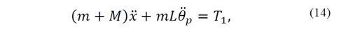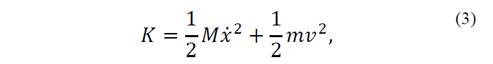 donde i = 1,2, K es la energía cinética del sistema, P es la energía potencial del sistema, 𝑞 𝑖 describe la coordenada generalizada que indica la posición lineal de la carretilla x(t) y la posición angular del péndulo θp (t) respectivamente, y 𝑇 𝑖 describe la fuerza externa que se aplica al sistema con T1 (t) la tensión aplicada a la carretilla y T2 =0 que define una fuerza aplicada a la masa de la carga. Entonces, de acuerdo con las suposiciones antes mencionadas, la energía cinética del sistema (ver Fig. 1), está dada por: