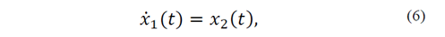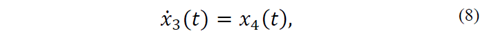 donde 𝑔 es la aceleración gravitacional. Luego, a partir de la combinación de ec. (2)-(5), y teniendo en cuenta la formulación de LaGrange ec. (1), se obtiene el siguiente sistema no lineal en espacio de estados de la grúa-torre: