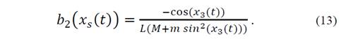 es la velocidad angular de la carga, 𝑢 𝑓 ?? = 𝑇 1 (𝑡) es la fuerza aplicada a la carretilla, y fi y bi son funciones no lineales descritas por: