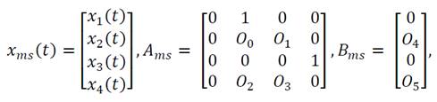 De acuerdo a la estructura de control mostrada en la Fig. 2, se construye un sistema en espacio de estados que incluye las variables de estado de la grúa torre y la nueva variable de estado del controlador 𝑤(𝑘); este sistema está dado por: