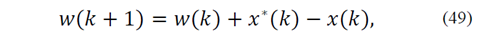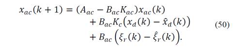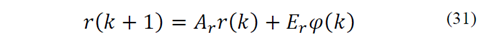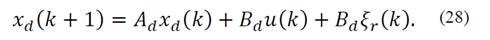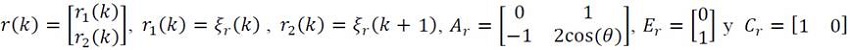 Basado en el modelo interno ec. (29) de la señal de perturbación ξr(k), se encuentra una descripción en espacio de estados dada por: