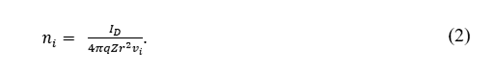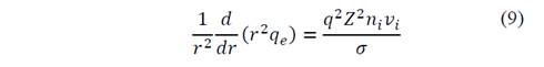 where 𝜌= 𝑛 𝑖 𝑞𝑍. Since the system studied here exhibits a spherical symmetry, 𝐴=4𝜋 𝑟 2 and 𝑣 𝑖 = 2 𝑊 𝑖 / 𝑚 𝑖 2 . Replacing these considerations in Eq. (1), the next expression is obtained: