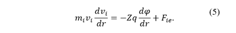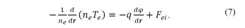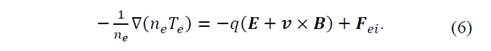 To determine the forces acting on the ions, an equation including the ion flux is included; also, the force due to the electric field exerted on this ionic fluid and the friction force with the electrons can be described by: