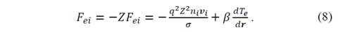 The energy and moment exchange between ions and electrons are given by [10]: