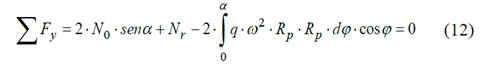 Para determinar las fuerzas que actúan en el volante se plantea el equilibrio de las fuerzas en la dirección del eje y-y obteniéndose fuerzas actuantes en el tramo analizado