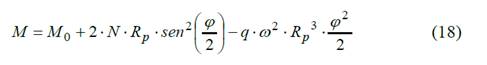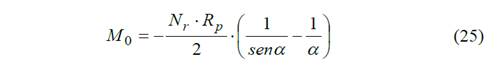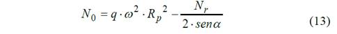 Por simetría en las secciones A y B no existen tensiones tangenciales, o sea, fuerzas internas de cortante. Solo existen fuerzas normales (No) y los momentos flectores (M0) por lo que en el tramo de llanta analizado solo actúan las fuerzas de inercia qi, N0, M0 y la fuerza que ejerce el rayo sobre la llanta Nr como se muestra en la Fig. 6b.