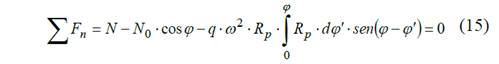 Plateando las ecuaciones de equilibrio ΣFn = 0 y ΣM0 = 0 se obtienen N y Mf .